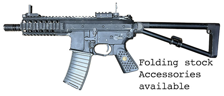 Slings, scopes, and other accessories available upon request. Some gas blowback rifles can now be accessorized with the Smoke &/or Flash devices listed at the bottom of the page. See tinyurl.com/PewTubeEffects for more information.
