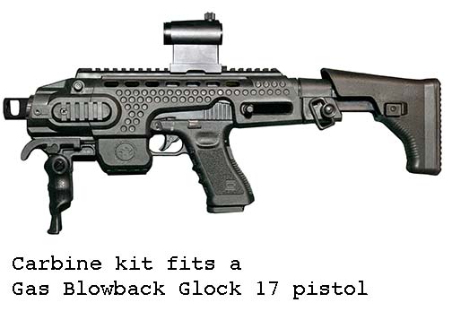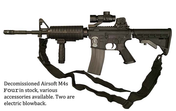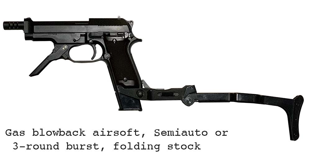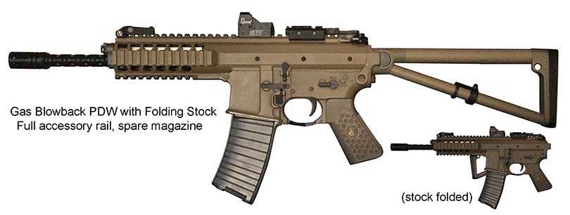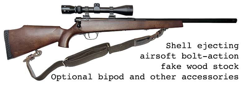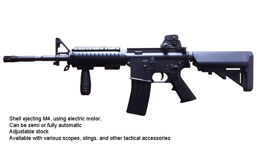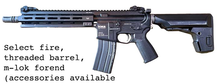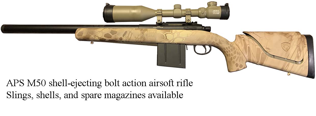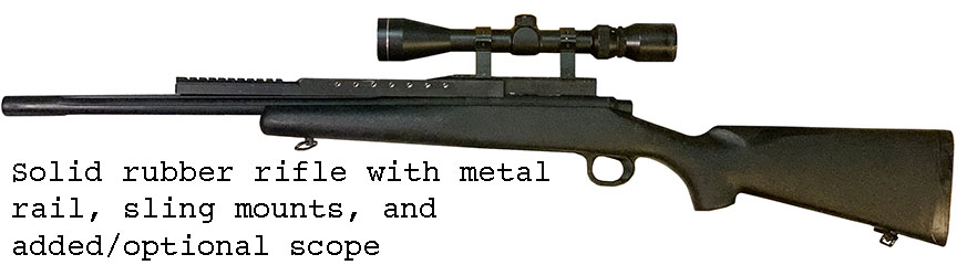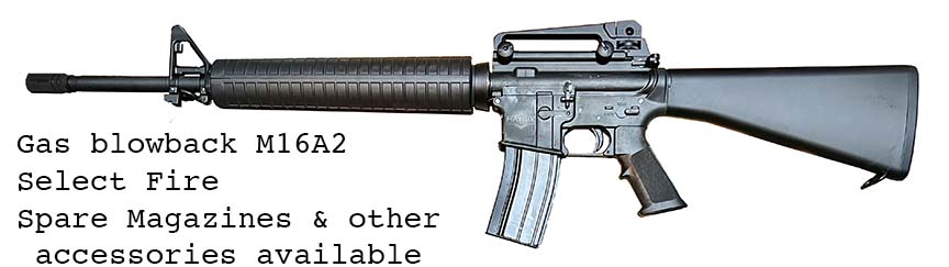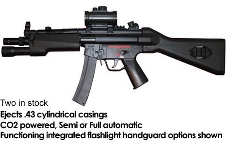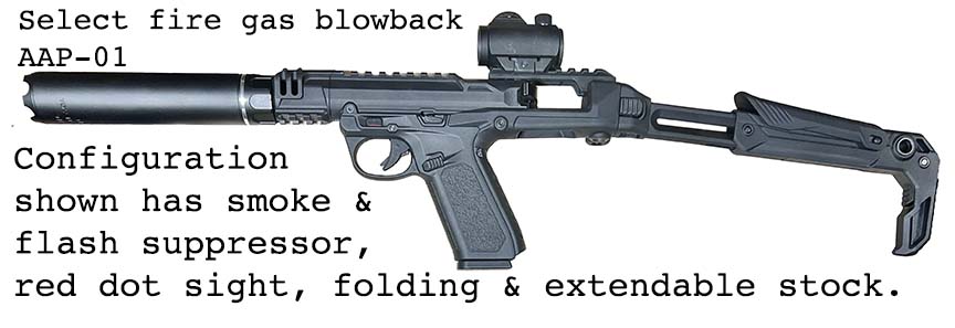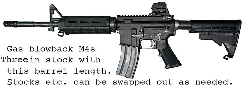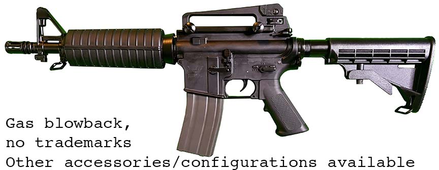 Slings, scopes, and other accessories available upon request. Some gas blowback rifles can now be accessorized with the Smoke &/or Flash devices listed at the bottom of the page. See tinyurl.com/PewTubeEffects for more information.