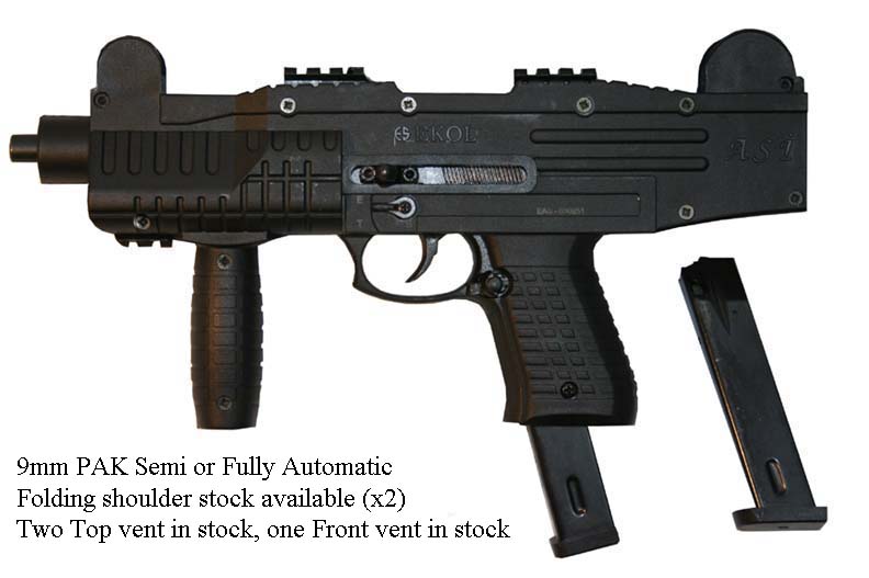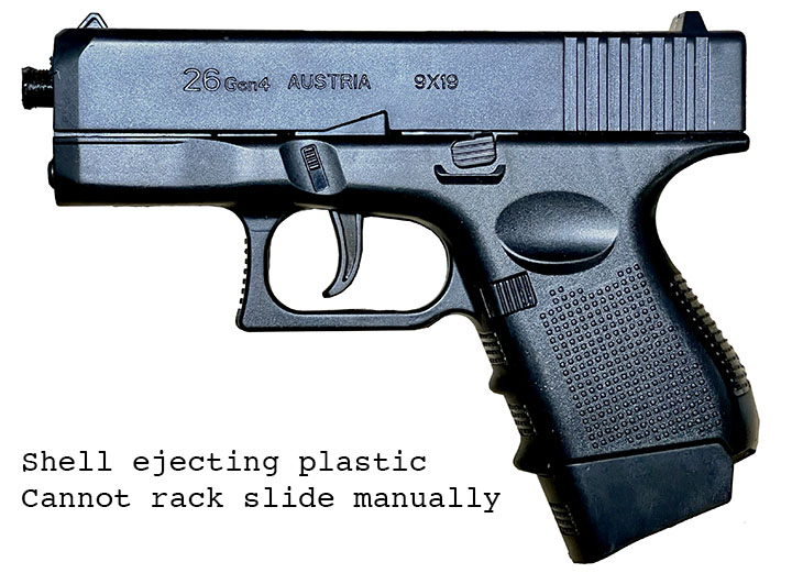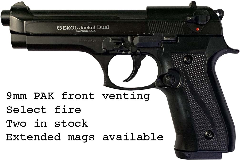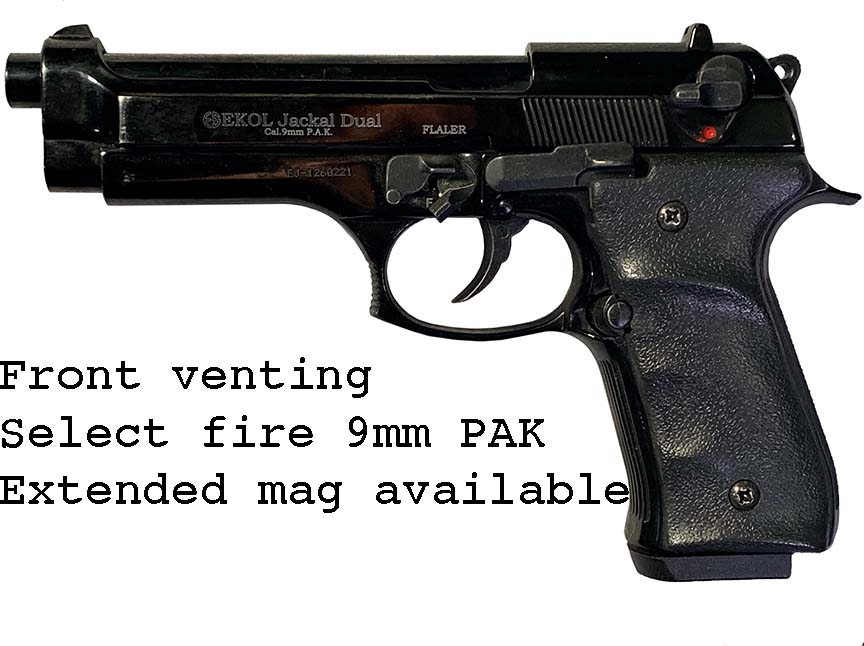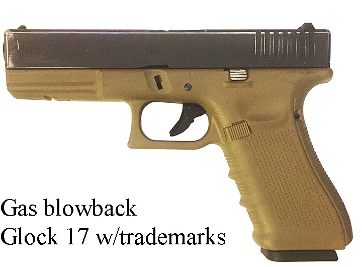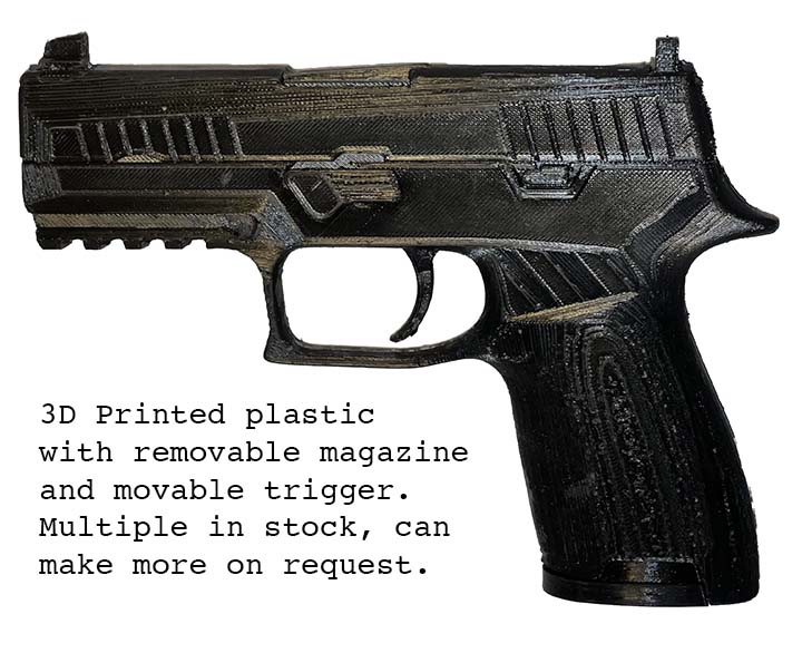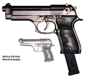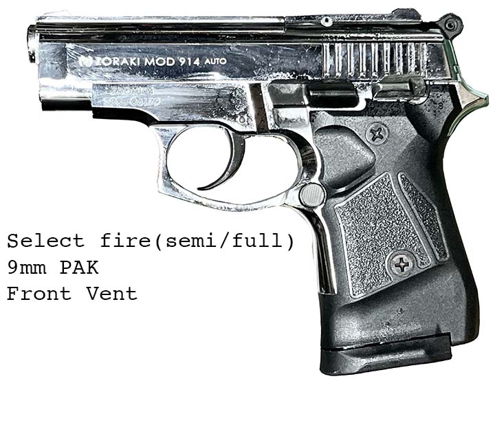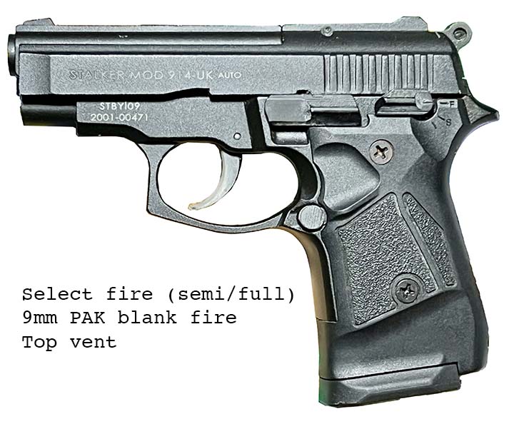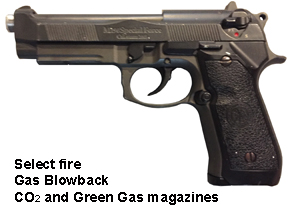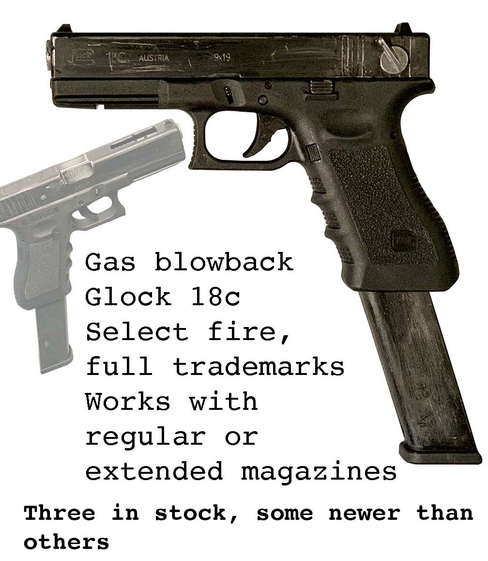 Prop Replicas of semiautomatic and select fire single-handed small arms.