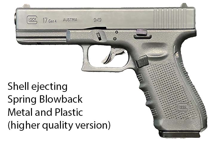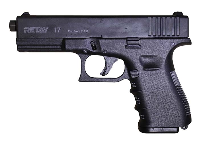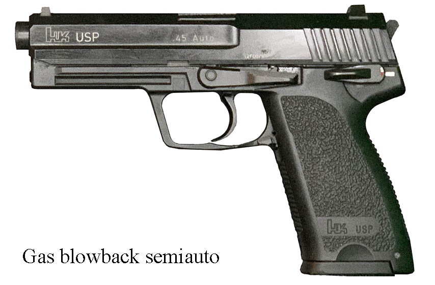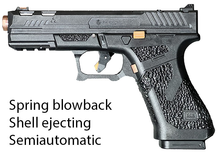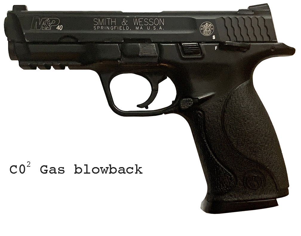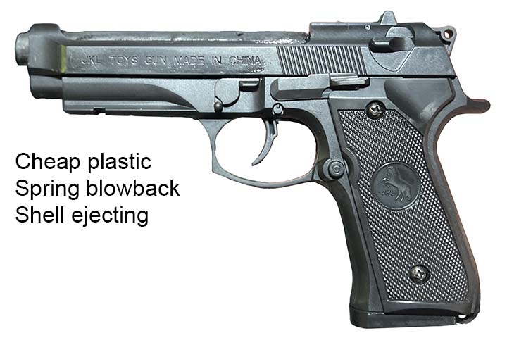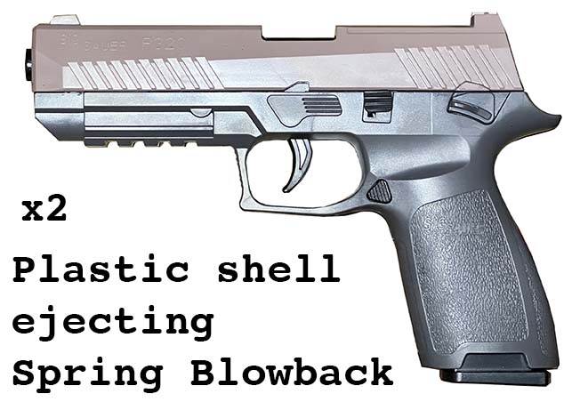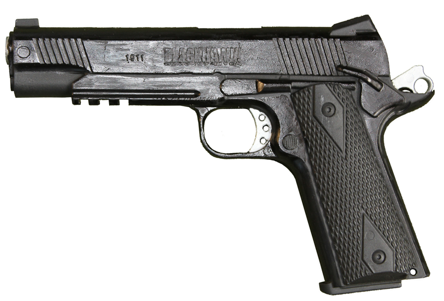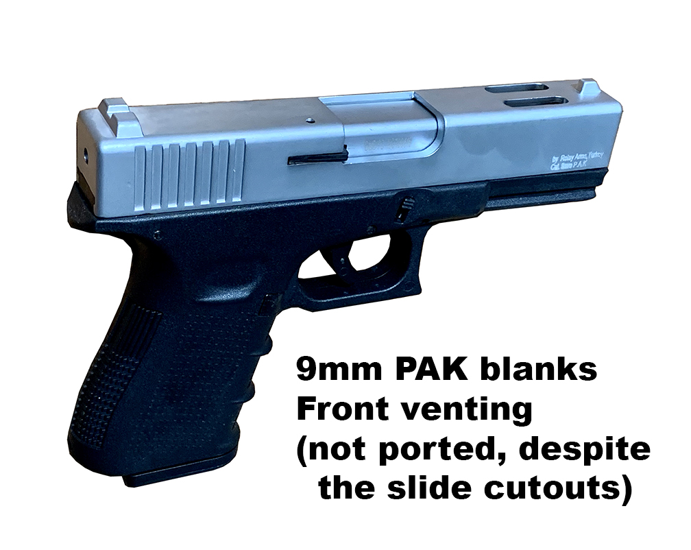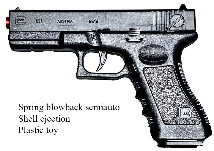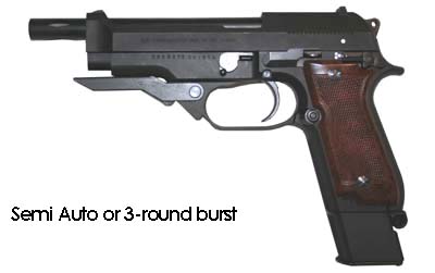 Prop Replicas of semiautomatic and select fire single-handed small arms.