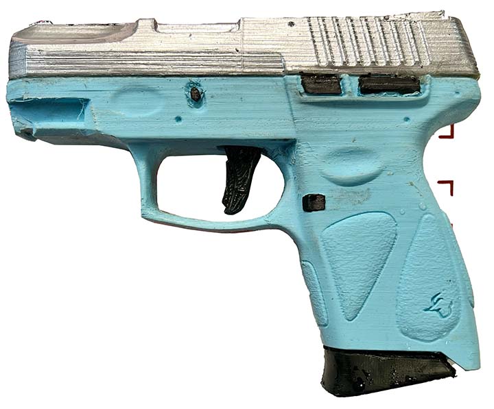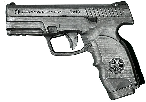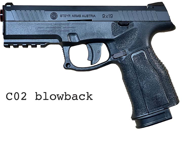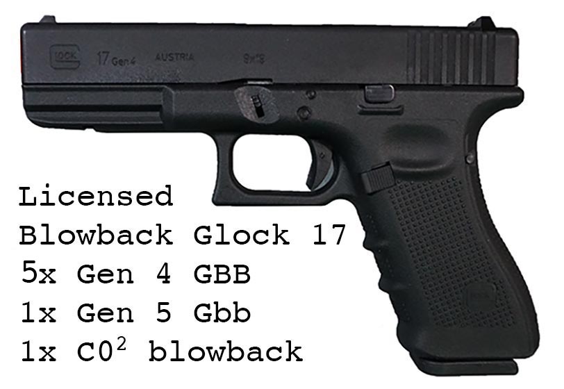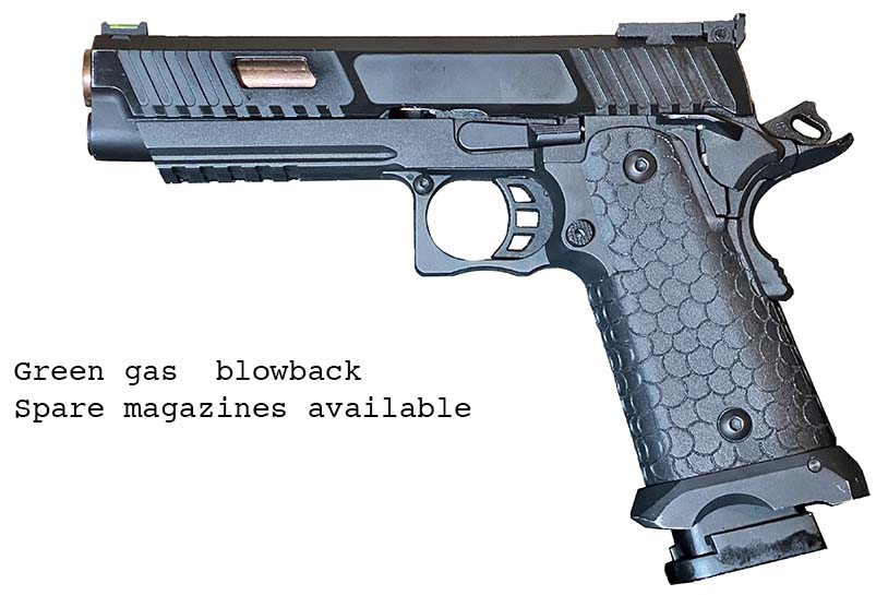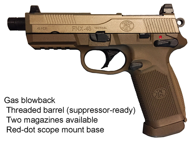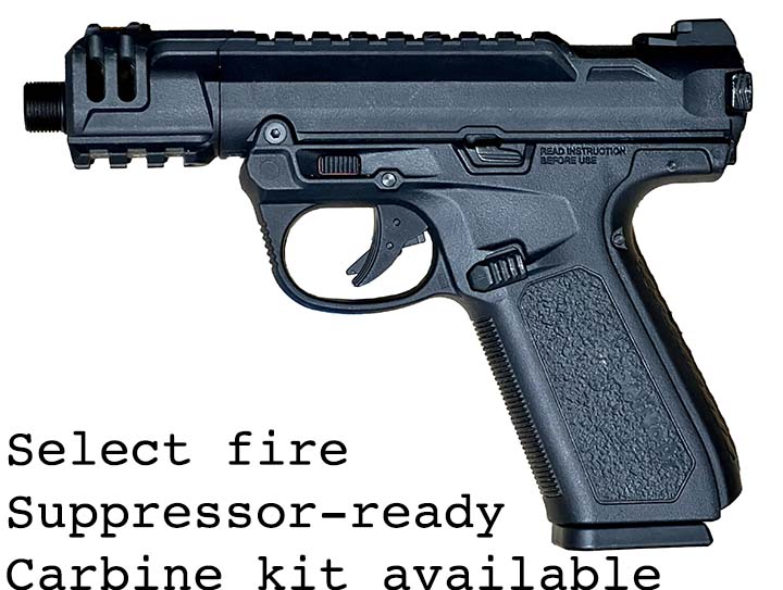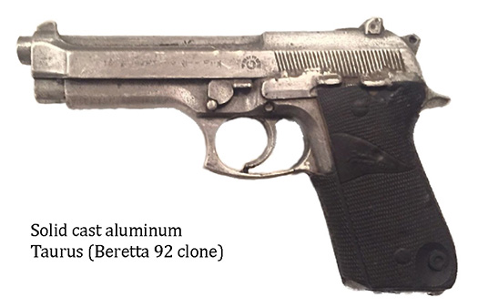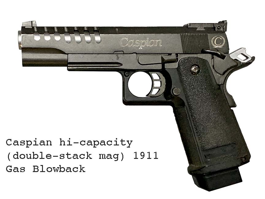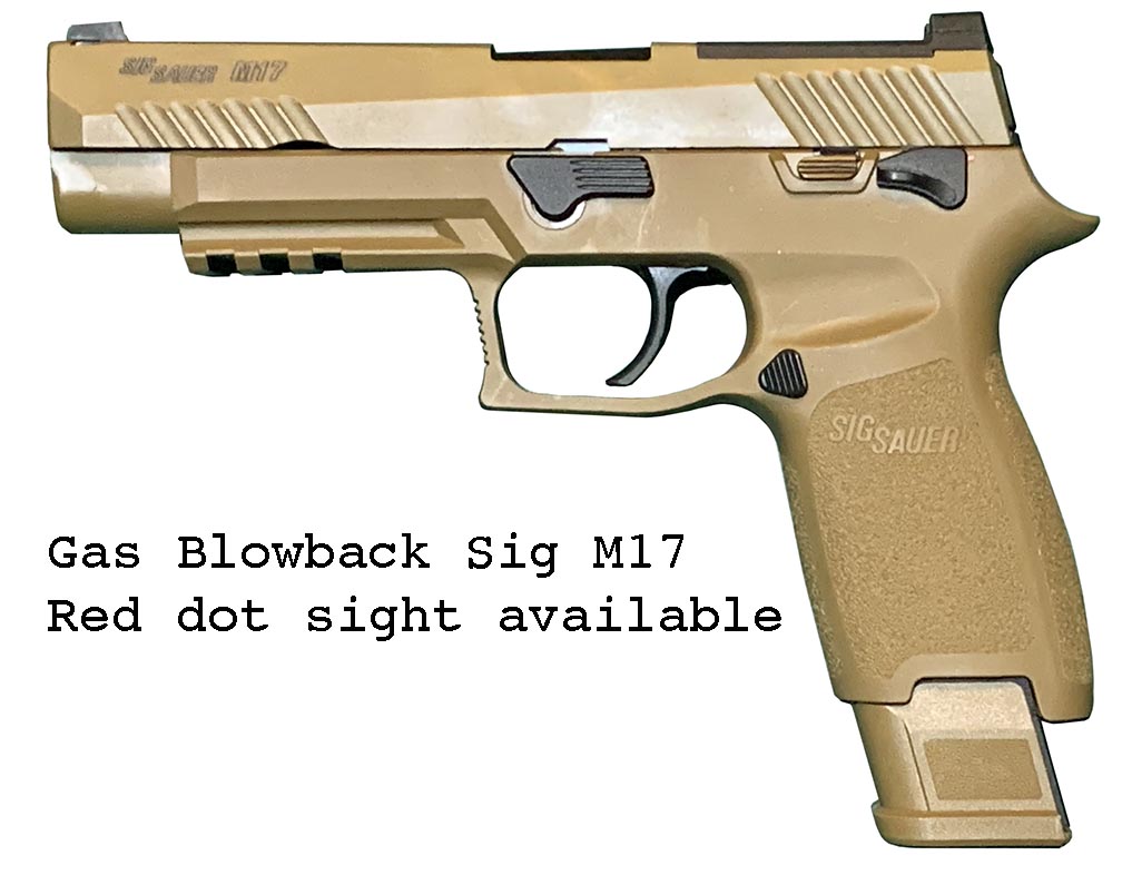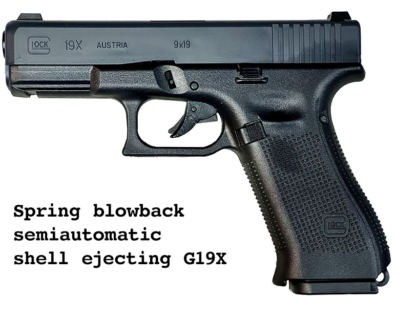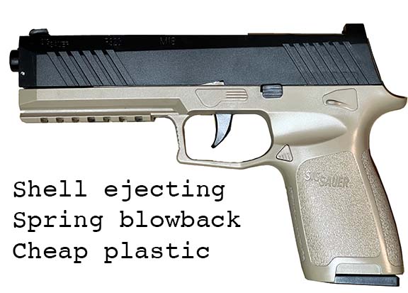 Prop Replicas of semiautomatic and select fire single-handed small arms.