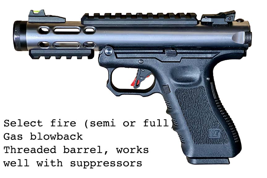 New! Smoke and/or flash effect fake suppressors listed below. See tinyurl.com/PewTubeEffects for more information, but these only work with select gas blowback props.